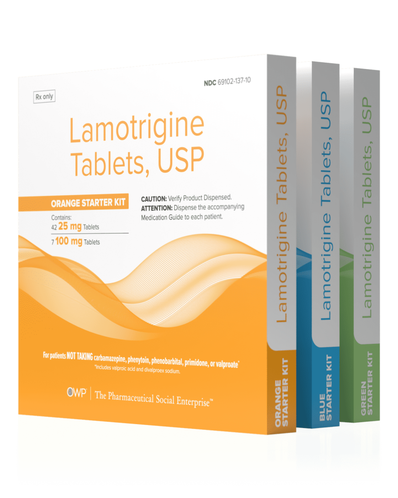 Lamotrigine Starter Kits are OWP Pharmaceuticals’ generic alternative (AB rated) to Lamictal® (lamotrigine) tablets Starter Kits.* [click here to learn more about generic bioequivalence]