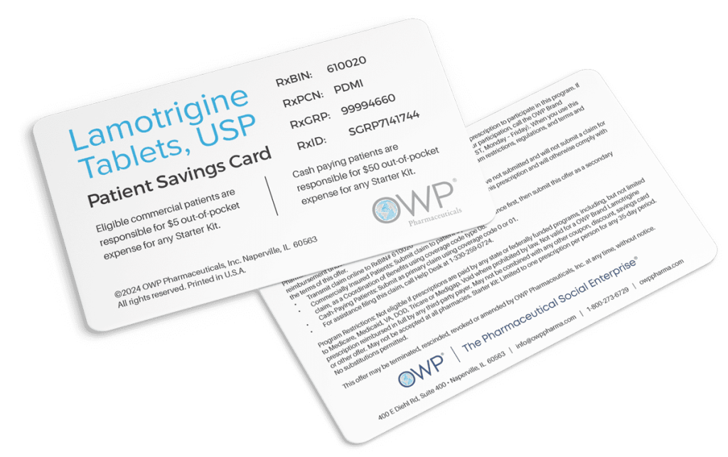 For Lamotrigine Starter Kit questions please contact us at: medinfo@owppharma.com
